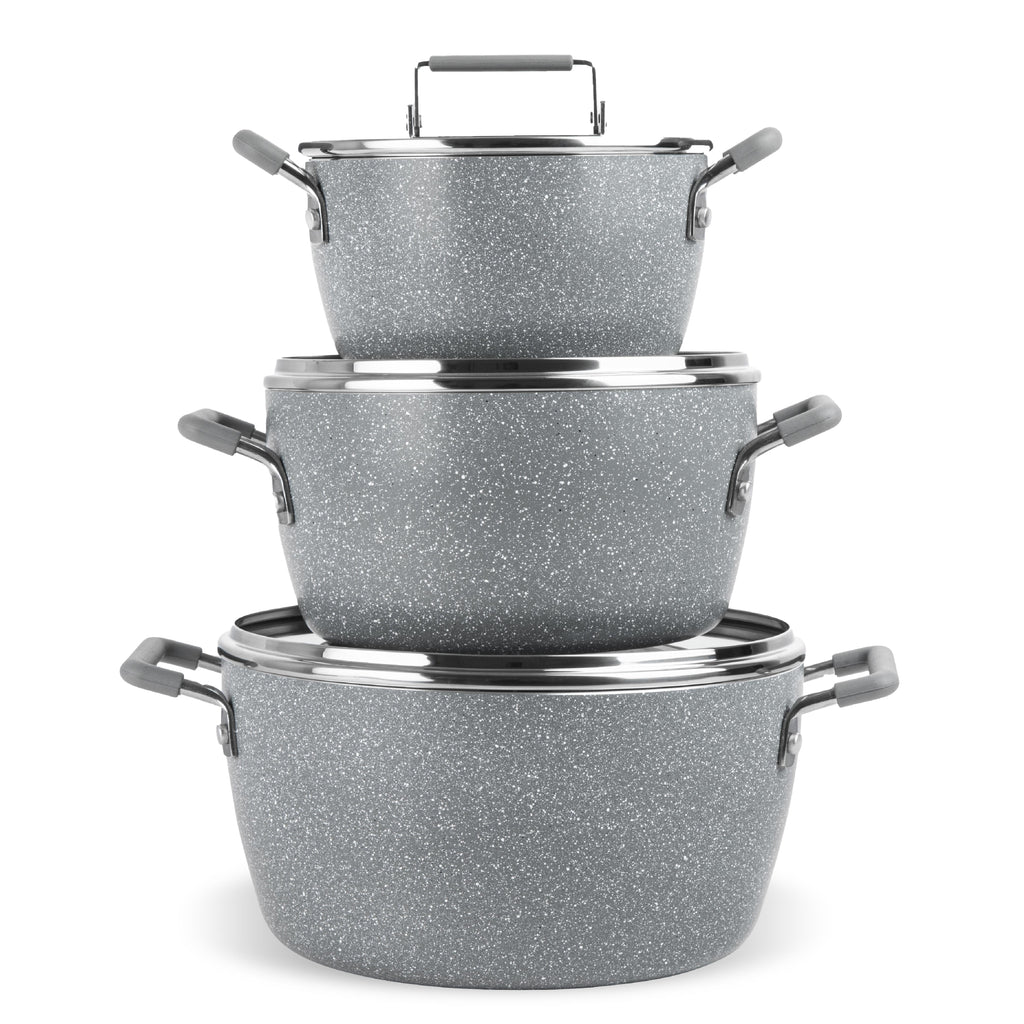 16 reviewsGranitestone Nesting 6 Piece Cooking Pots Set, Kitchen Pots, Non Stick Coating, 5qt 3qt & 1.5qt Pots with Lids, Stay Cool Handles Dishwasher Safe