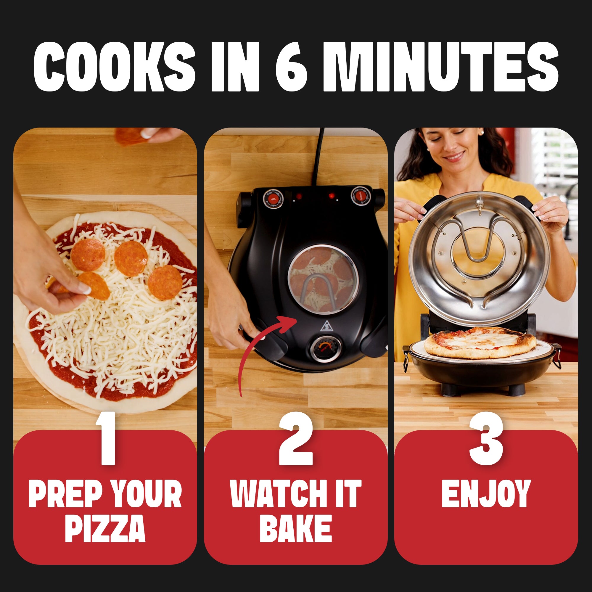 - ELECTRIC POWERED: Plug your Piezano Indoor Pizza Oven into the nearest outlet. Place it on your countertop for everyday convenience. Base suction cups on the bottom prevent it from sliding all over the place. PLEASE NOTE: The Piezano Pizza Oven utilizes a 3-prong plug,