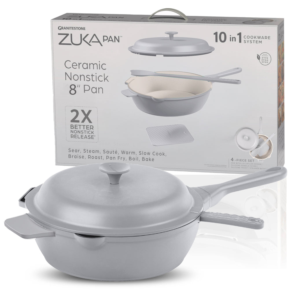 Granitestone 8" Zuka Pan – 4-Piece Multi-Functional Everyday Pan Set with Lid, & Nylon Spoon